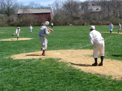 Fast forward through some club hooliganry to Saturday, to the 3rd Annual St. Louis Cup. The setting for the matches was the beautiful Forest Park, home of the St. Louis Zoo and the site of the 1904 World’s Fair. Brandywine BBC was concerned about the rule differences going into their matches being that in the Midwest they play by modified 1860s rules instead of 1864 rules. The biggest concern was that someone would forget that taking a large lead, sliding or stealing was prohibited by the modified 1860 rules. One other major adjustment was that defensive positioning did not allow for any shifts. This meant that the first basemen, second basemen and third basemen must be within two steps of their respective base before the pitch is thrown. Only the shortstop was allowed to play anywhere on the field. Even the outfielders were not allowed to shift. This took some getting used to for the club. The Brandywine BBC played 3 matches in the St. Louis Cup and were defeated by the St. Louis Perfectos (11-3), the St. Louis Brown Stockings (9-5), and the Belleville Stags (31-9). All 3 teams played hard and earned their victories over the Brandywine club. Though Brandywine got beat, they didn’t let that get the best of them. Instead they vowed to come back with a vengeance on Sunday and let St. Louis know how the east coast plays base ball.